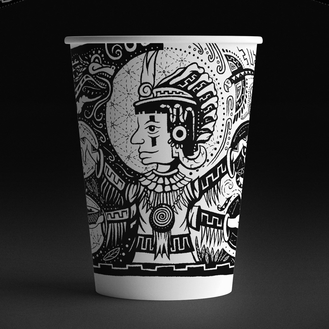 Rendered in a bold black-and-white style, the design wraps the bag as a continuous story—inviting viewers to discover layers of meaning that reflect the origins, traditions, and shared human connection behind each cup.